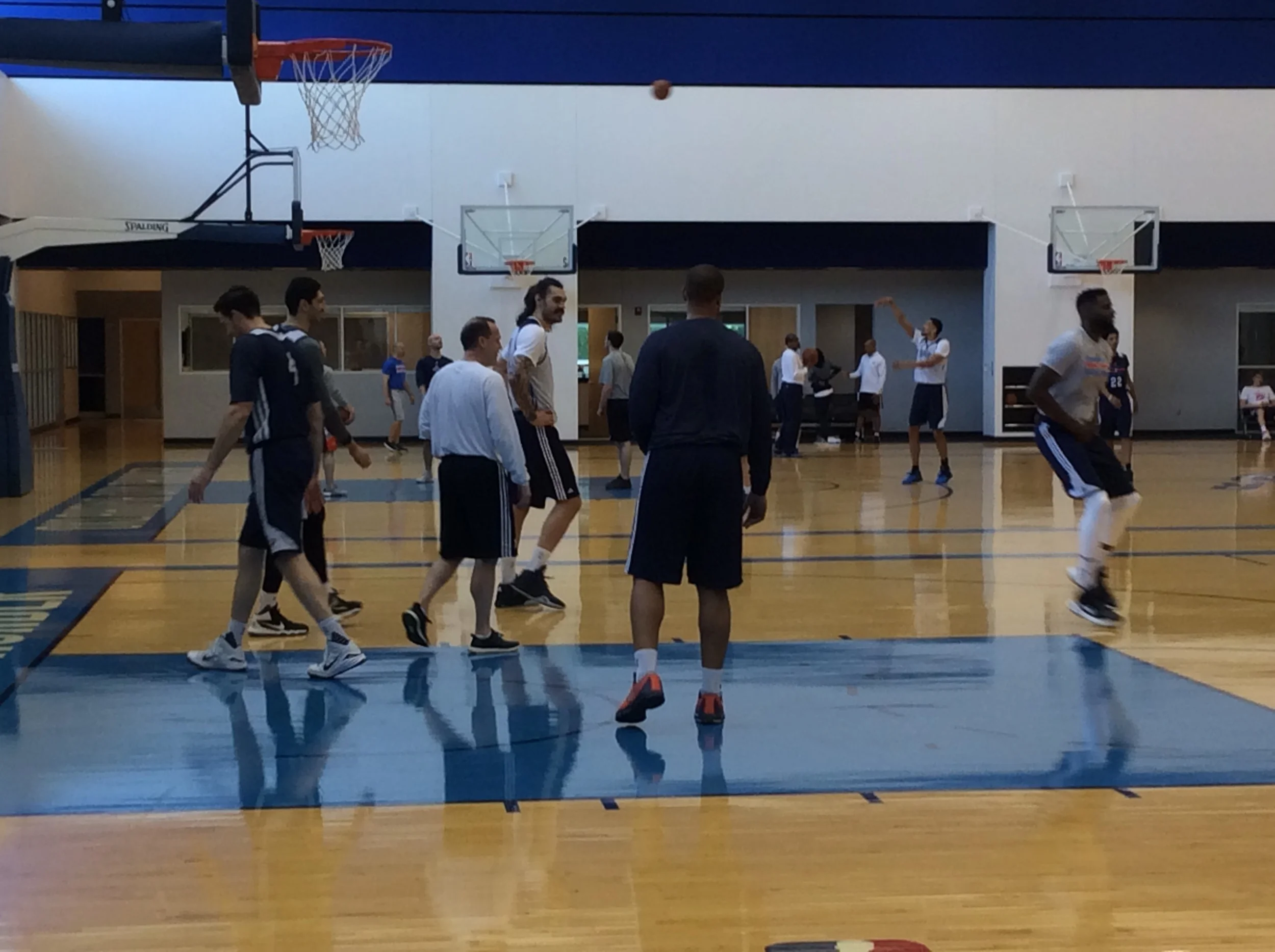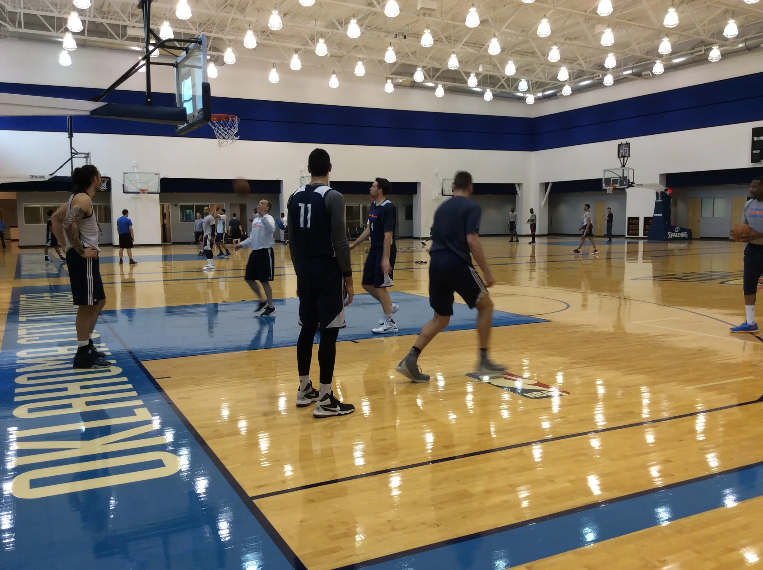 Thunder players and coaches working during the team's shootaround Friday morning at the INTEGRIS Thunder Development Center. (Photo By Randy Renner/InsideThunder.com)